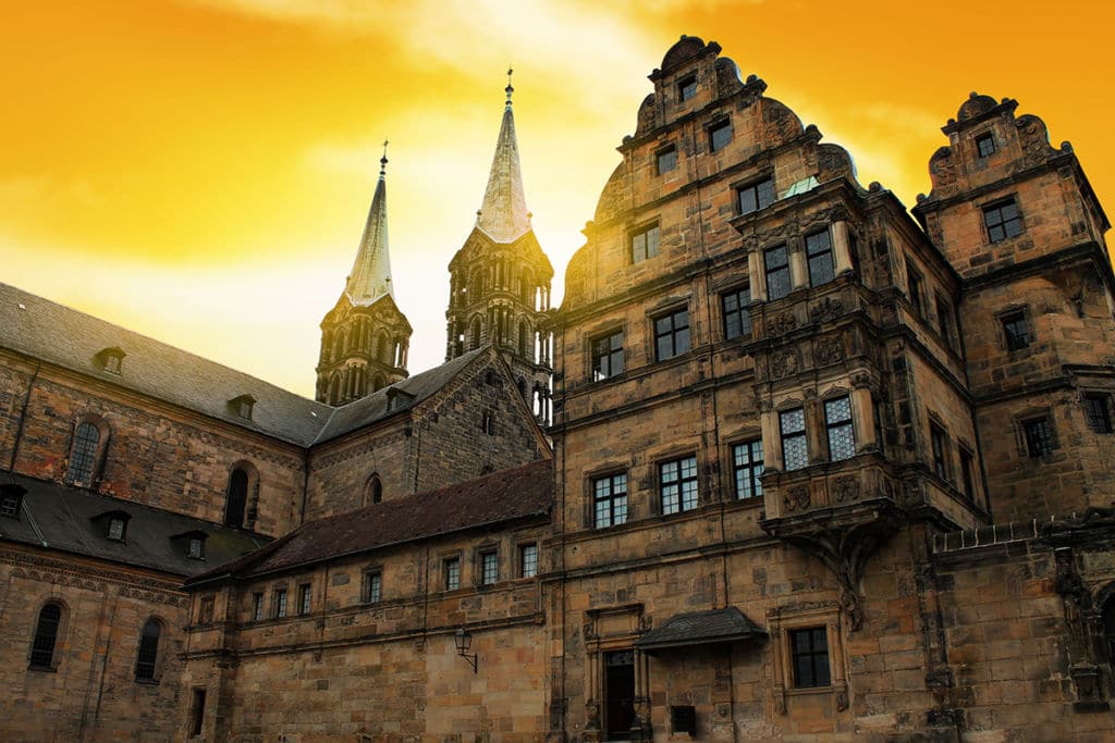Im Jahre 1007 gründeten Kaiser Heinrich II und seine Ehefrau Kunigunde das Bistum Bamberg. In dem Zuge wurde ein Dom gebaut. Leider brannte dieser 1185 ab. Daraufhin baute man einen neuen Dom, dieser wurde 1237 geweiht. Er sollte dem ersten so ähnlich wie möglich sein, ihn aber in Höhe und Breite übertreffen. Dieser Dom wurde kunstvoll verarbeitet und hergerichtet. Beispielsweise stehen der Spitze des Doms Skulpturen vom Bamberger Reiter oder die Synagoge. Der Bamberger Reiter entwickelte sich schnell zum Wahrzeichen Bambergs und ist einer der wertvollsten Schätze der europäischen Kunstgeschichte.