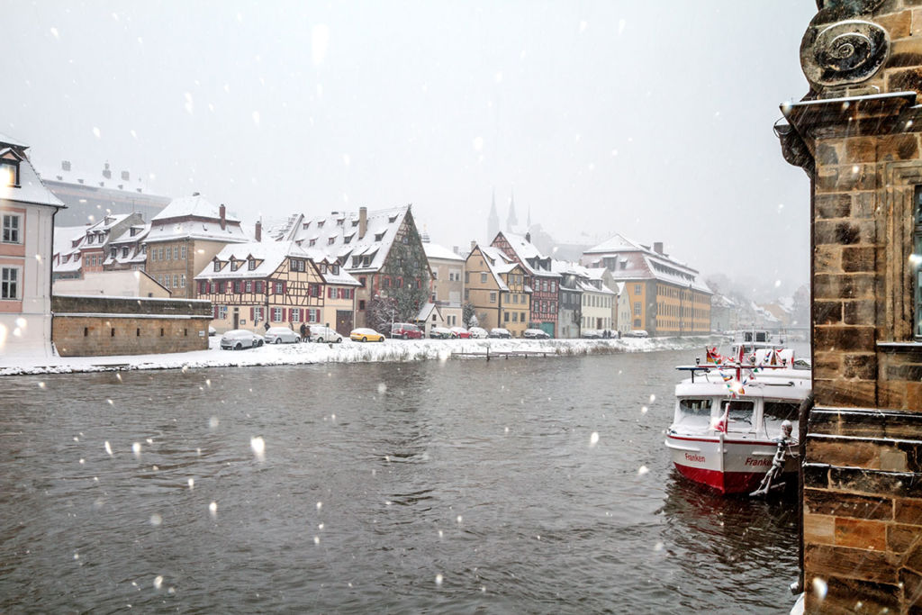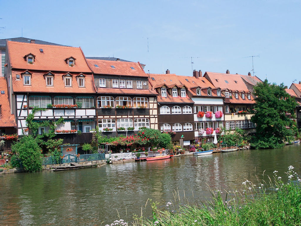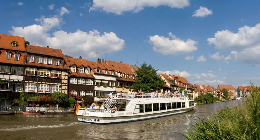 Benannt wurde Klein Venedig durch zwei Journalisten 1842 in dem Buch „Handbuch für Reisende auf dem Mond“ . Mit dem berühmten italienischen Namensvetter hat das Klein Venedig zwar recht wenig gemein, doch die malerisch an der Regnitz gelegenen Fischerhäuschen sind eine Besichtigung allemal wert. Besuchen Sie es zu Fuß oder mit einer romantischen Schifffahrt auf der Regnitz und bewundern Sie die direkt am Wasser gelegenen Häuschen. Schiffsausflüge sind mit der Bamberger Personenschifffahrt zwischen März und November möglich. Die beiden Schiffe heißen „Stadt Bamberg“ und „Christl“ und legen am alten Kranen an. Sie fahren in etwa 80 Minuten durch die Altstadt bis zum Hafen herunter.