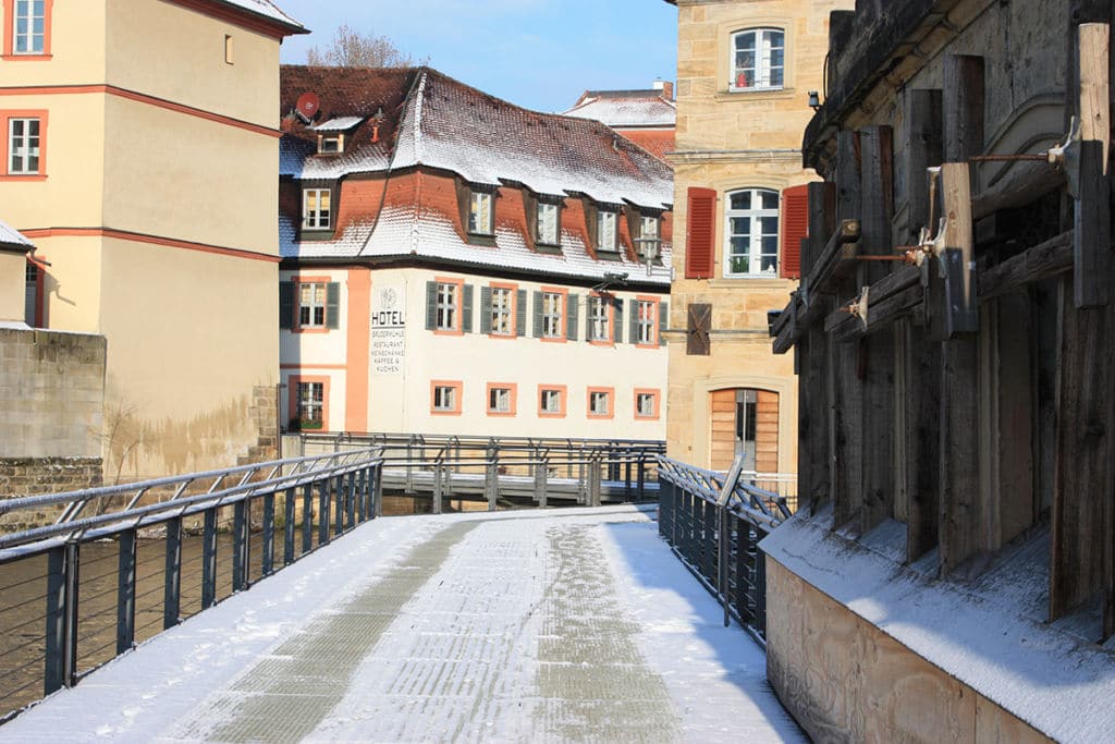 Das Mühlenviertel ist eines der schönsten Sehenswürdigkeiten Bambergs. Es teilt sich in zwei Bereiche: Das obere und das untere Mühlenviertel. Beide Viertel werden nur durch die Bischofsmühlbrücke voneinander getrennt.