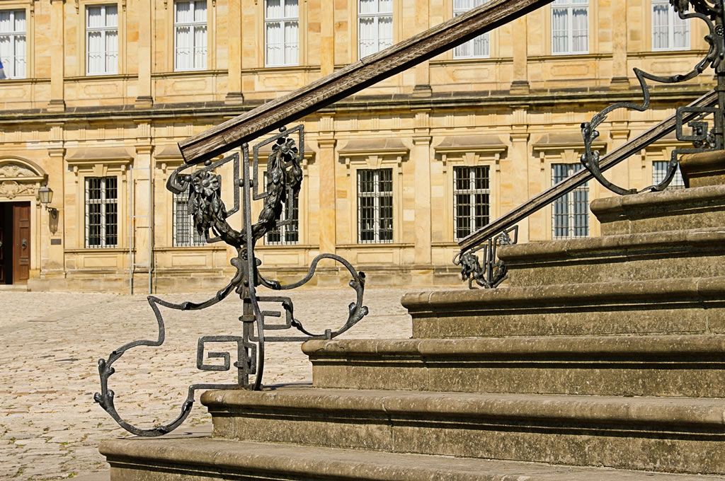 Damals wollten die Fürstbischöfe die Neue Residenz noch erweitern. An der Stelle wo sich das hintere Renaissance und das vordere Barrockgebäude treffen können Sie Kragsteine sehen. Diese zeigen alle zur Alten Hofhaltung von Bamberg. Der Grund dafür ist, dass nach den Plänen der Fürstbischöfe beide Gebäude miteinander verbunden werden sollten. Die Straße sollte durch einen Torbogen unter der Verbindung verlaufen.