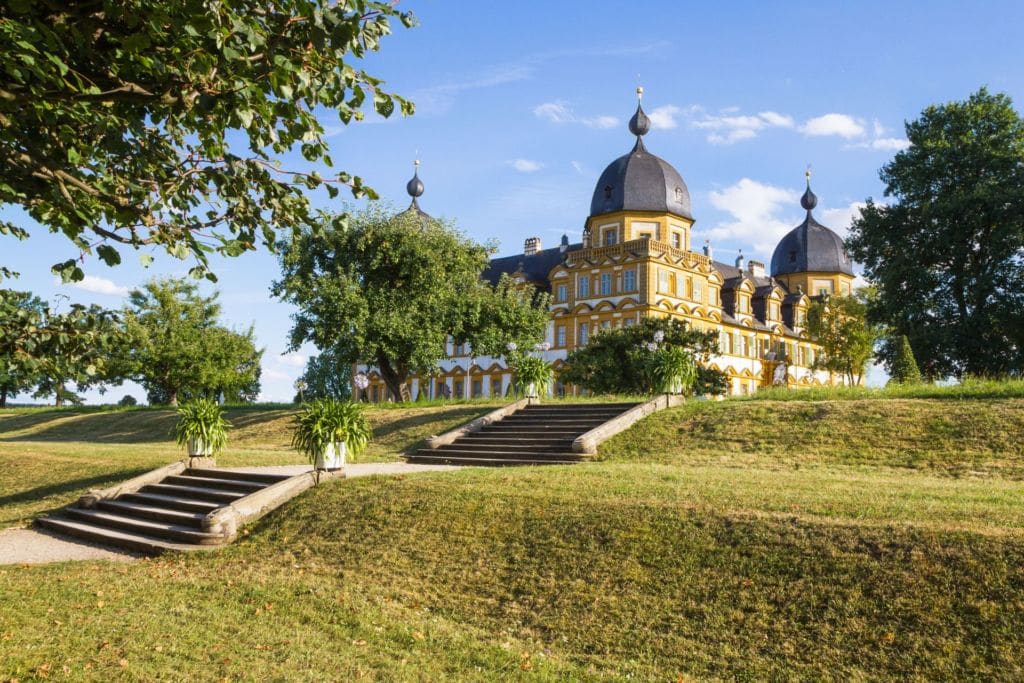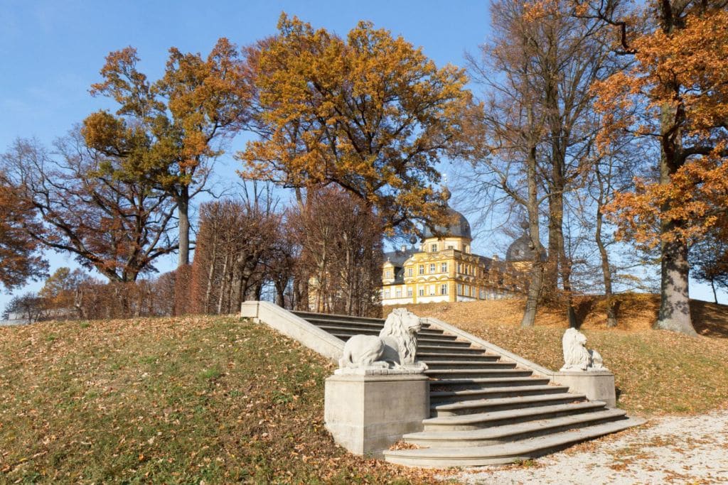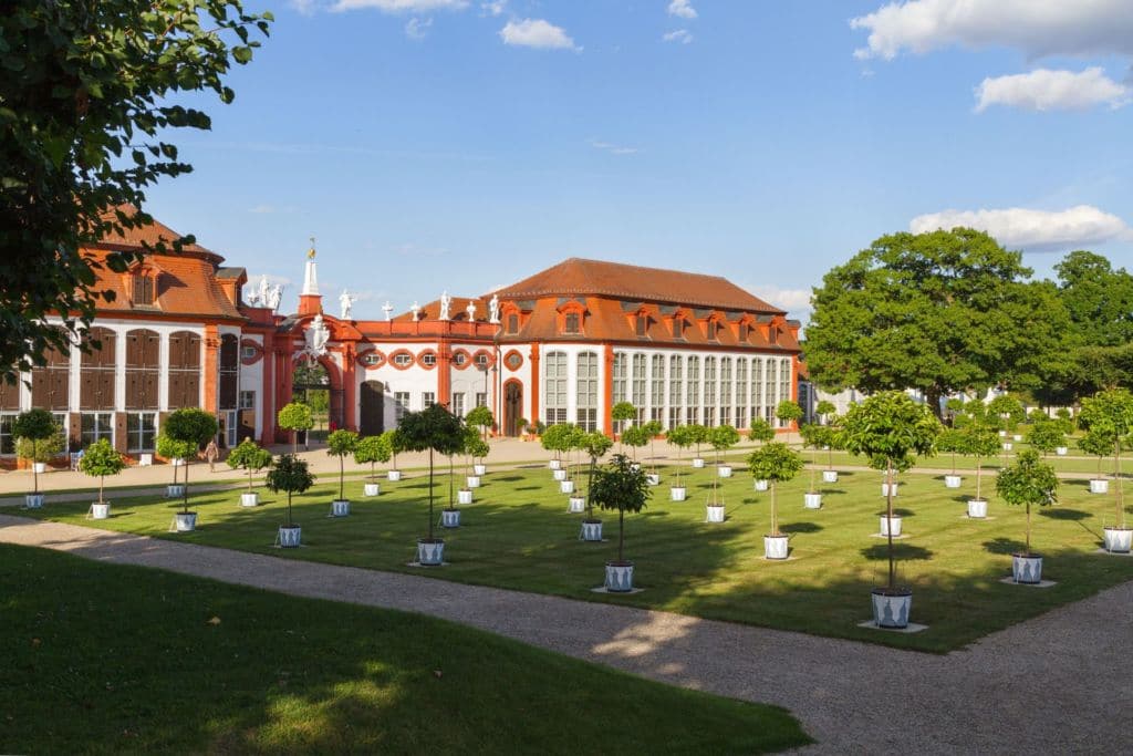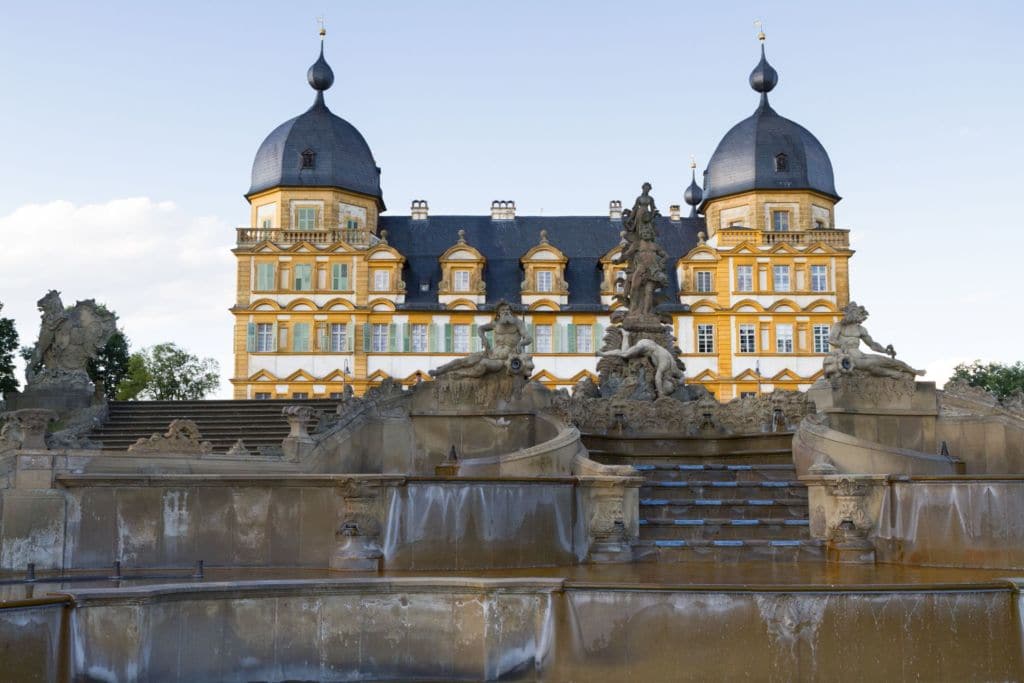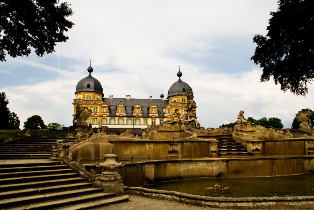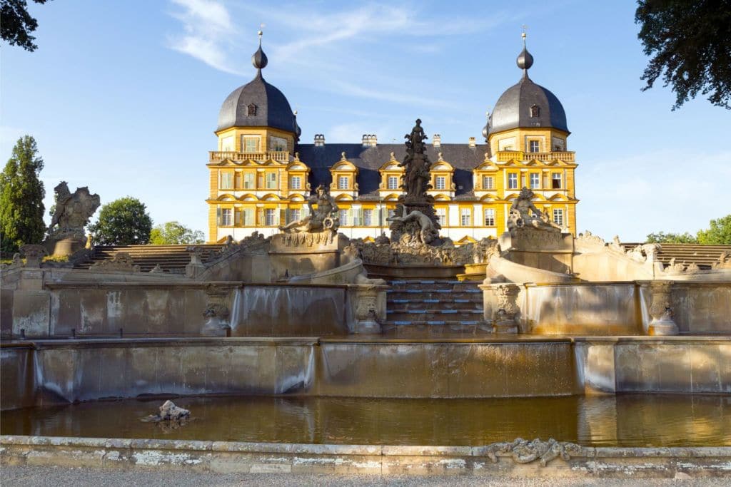 Die Gartenanlage um das Schloss herum wurde von Fürstbischof Lothar Franz von Schönborn im Stil des Rokoko angelegt. Dazu gehören ein Brunnen, verschiedenen Fontänen, Bosketten und Heckentheater, die damals den Garten schmückten. Doch verschiedene Fürstbischöfe veränderten den Garten nach ihren Wünschen. Fürstbischof Adam Friedrich von Seinsheim beispielsweise sorgte dafür, dass im Garten Skulpturen, Wasserspiele und ein Labyrinth errichtet wurde. Diese Änderungen fanden von 1757 bis 1779 statt. Heute ist das Labyrinth leider nicht mehr erhalten. Teilweise konnten aber die Skulpturen die Zeit überdauern. Diese Skulpturen fertigte der Bildhauer Ferdinand Tietz an. Er wurde später zum Hofbildhauer. Weitere seiner Werke können Sie ebenfalls im Rosengarten hinter der Neuen Residenz bestaunen.