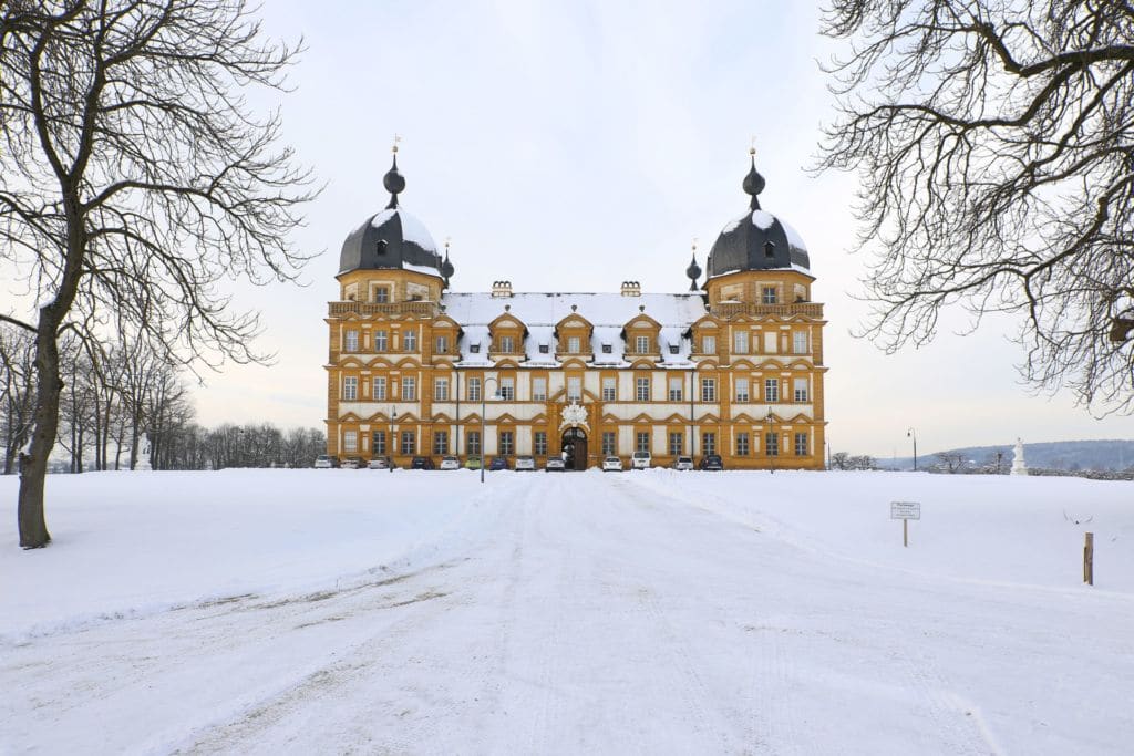 Errichtet wurde das Schloss Seehof als Sommerresidenz und Jagdschloss für die Fürstbischöfe Bambergs. Die Anlage auf der das Schloss Seehof errichtet wurde, beträgt 21 Hektar. Das Gebäude steht mittig auf dem Gelände. Das Schloss an sich ist quadratisch und hat an jeder Ecke einen Eckturm. Es ist sonnengelb gestrichen und geschmückt von vielen aufwendigen Ornamenten. Das Schlossinnere wird von Stuckkunst aufgewertet. Besonders die Stuckdecken lassen harte, künstlerische Arbeit erkennen.