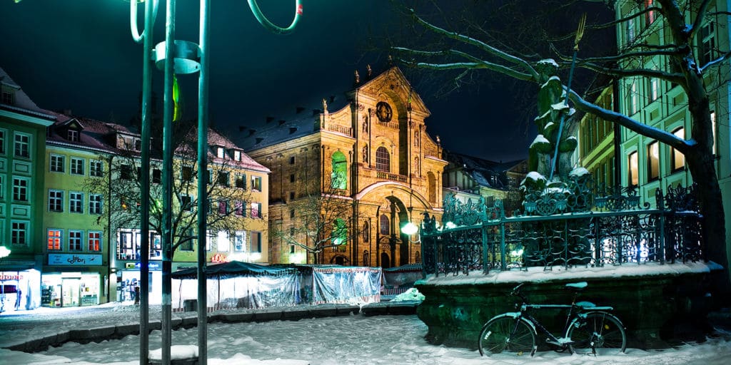 Auf dem Maxplatz erinnert heute nichts mehr daran, dass hier bis 1805 die Martinskirche stand. Im Zuge der Säkularisation wurde die Kirche abgebrochen. Statt einer Kirche findet man hier heute schöne Wochenmärkte auf dem Grünen Markt und den berühmten Gabelmann. Der Name „Martinskirche“ versiegte aber dadurch nicht, sondern wechselte nur den Besitzer: heute wird die ehemalige Jesuitenkirche so genannt. Sie befindet sich in nächster Nähe zum Maxplatz.